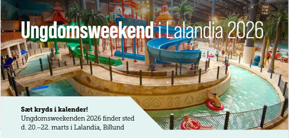 Ungdomsweekenden er i år d. 20. – 22. marts 2026, det koster 400 kroner at deltage. I den pris er inkluderet indkvartering i hytter, mad og drikke, aktiviteter og adgang til Aquadome både lørdag og søndag. Ungdomsweekenden er alkoholfri. Der vil bo en repræsentant fra bestyrelsen i hver hytte.